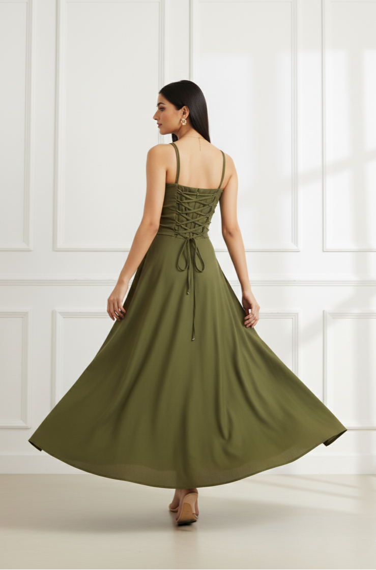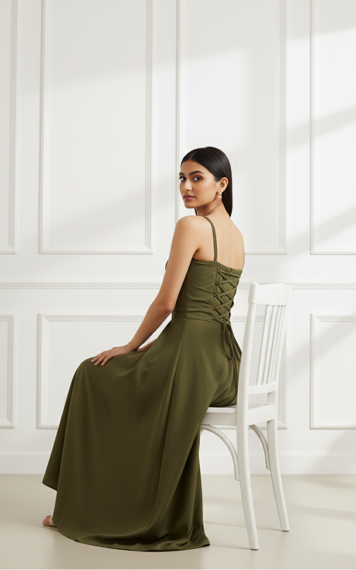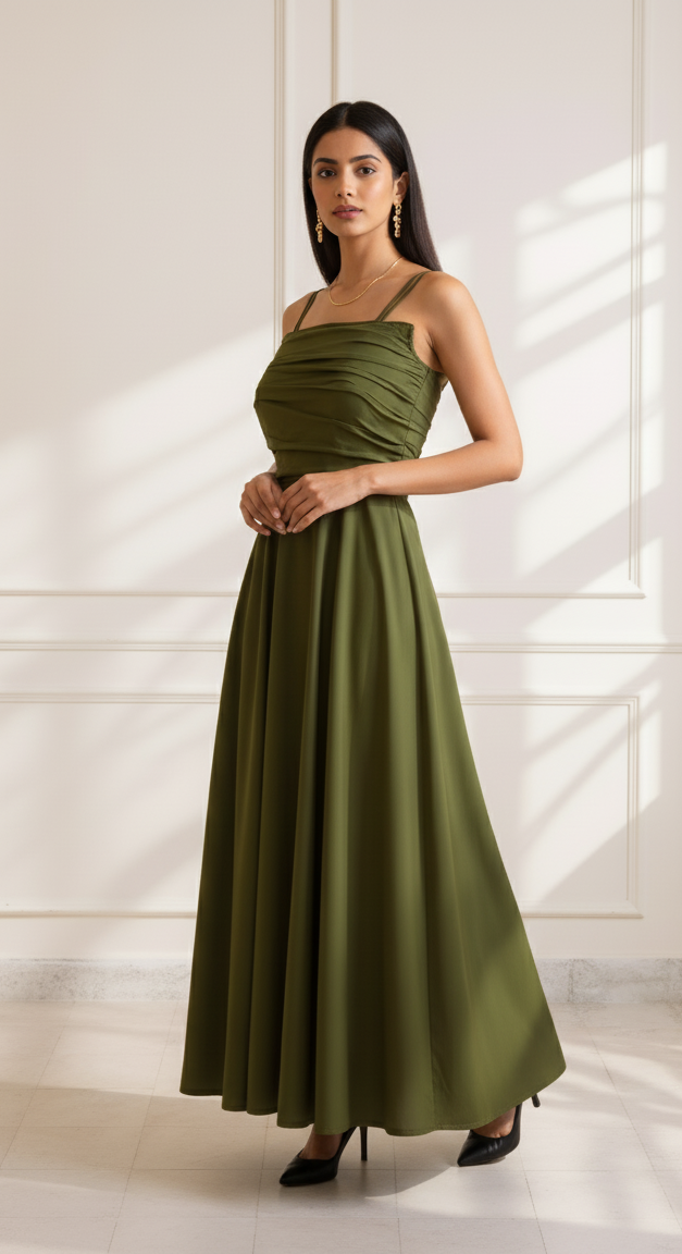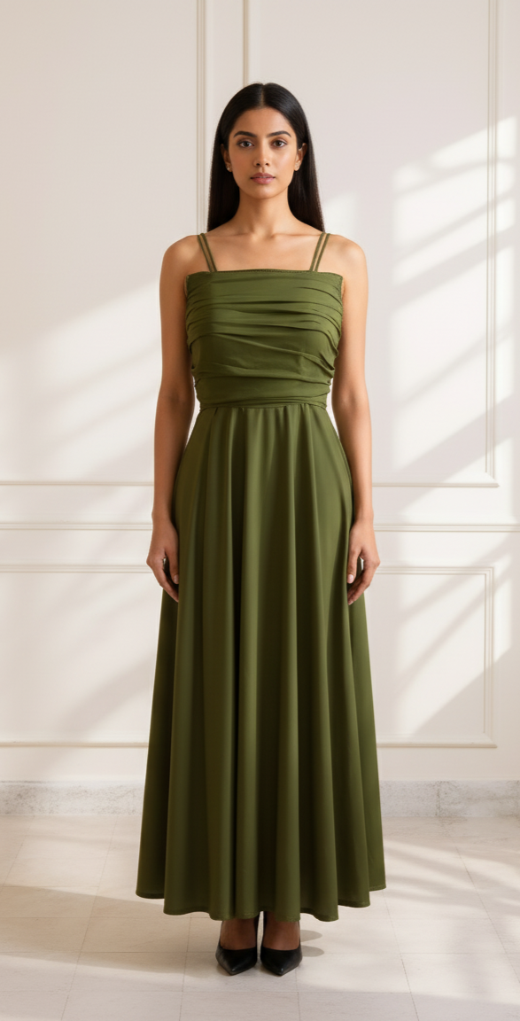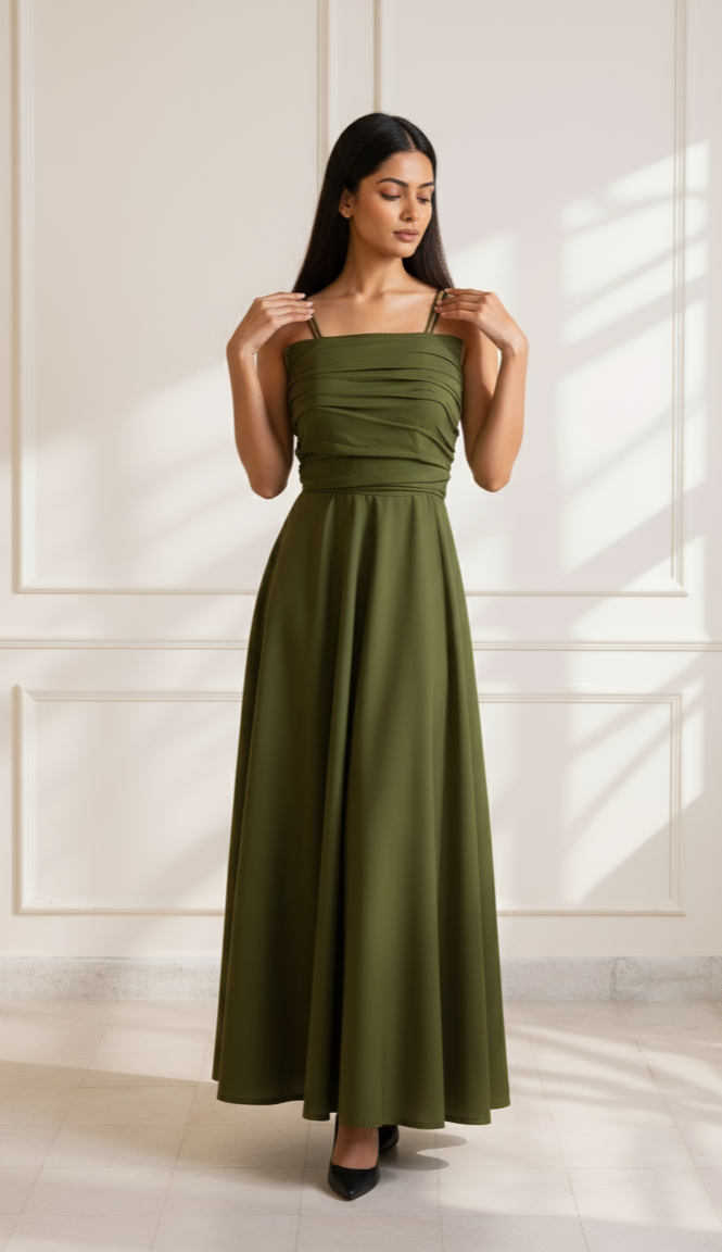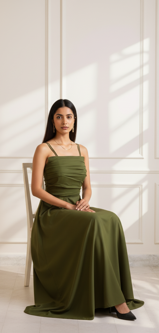 - Meet your new wardrobe essential – the Olive ease or sage haze Draped Dress, crafted in soft, breathable premium crepe that drapes like a dream.